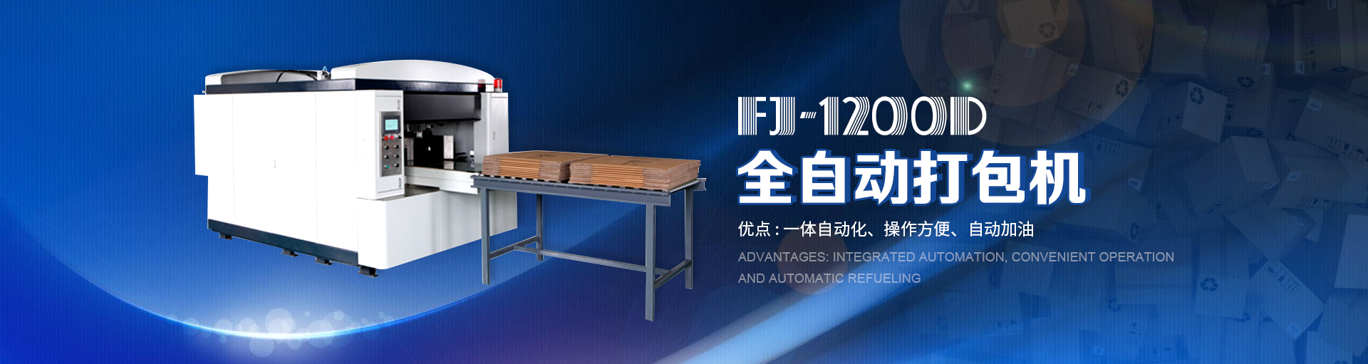 上海富鈞包裝機械有限公司成立于2006年,公司投入大量資源專注于全自動雙頭打包機、自動 PE 打包機、PE 打包帶的研發與制造,基于公司核心團隊在包裝機械行業二十多年的經驗,為各級紙箱、紙板廠實現了優化生產、智能物流以及全自動化生產提供各種設備配置方案,并得以多年的實施,為客戶降低了成本,提高了效益。并在全國各地配備專業的技術人 員負責機械安裝、保養及維修,為客戶提供快捷的本地化售后服務!公司一直秉承著"以誠為本,以質取勝"的經營理念,堅持走自立創新,穩步發展之路。針對應用行業的不同要求,從機械結構、材質選配、電路設計以及智能 化控制等方面進行不斷改進及創新,以誠信、實力和產品質量以及本地化售后服務獲得業界的認可,歡迎您蒞 臨參觀、指導和業務洽談!